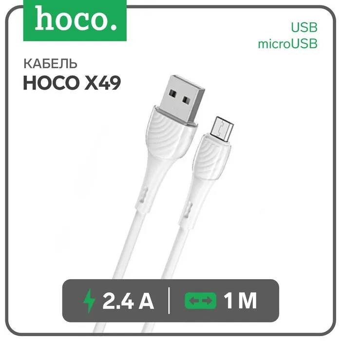 Кабель Hoco X49, microUSB - USB, 2.4 А, 1 м, PVC оплетка, клипса, белый — Характеристики