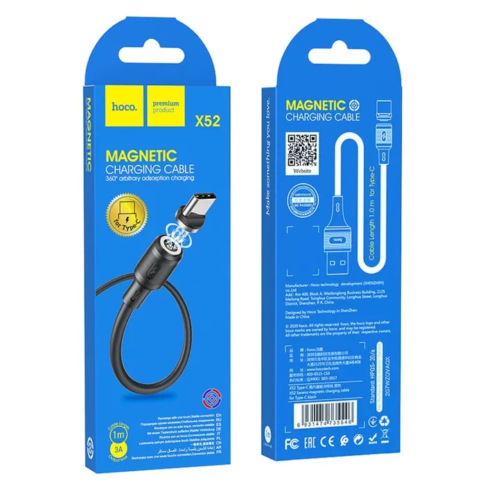 Кабель Hoco X52, Type-C - USB, магнитный разъем, только зарядка, 3 А, 1 м, черный — Характеристики