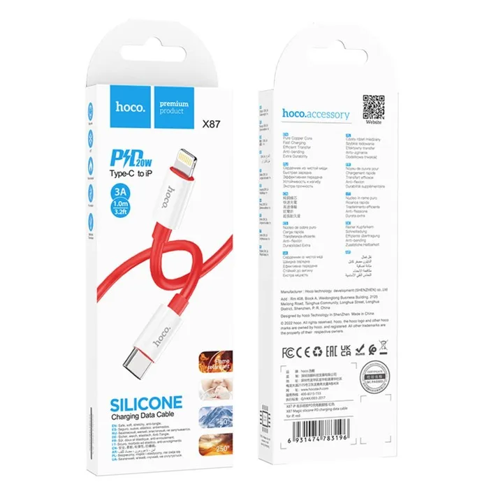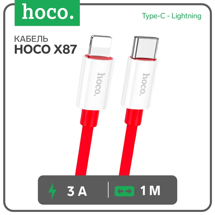 Кабель Hoco X87, Type-C - Lightning, 3 А, 1 м, оплётка силикон, красный — Характеристики