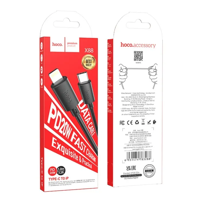 Кабель Hoco X88, Type-C - Lightning, 1 м, быстрая зарядка, ПВХ, чёрный — Характеристики