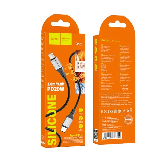 Кабель Hoco X92, Type-C - Lightning, 3 м, оплётка силикон, чёрный — Характеристики