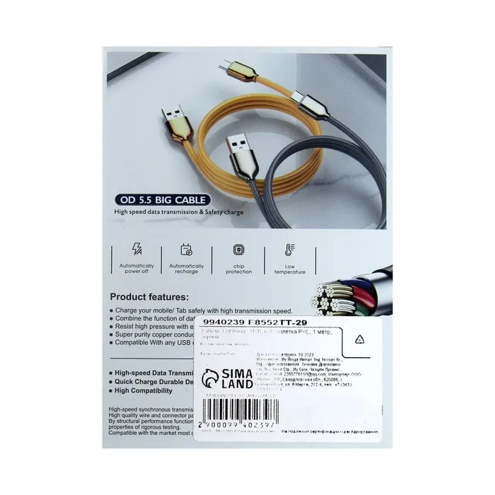 Кабель Lightning - USB, 6 A, оплётка PVC, 1 метр, чёрный — Характеристики
