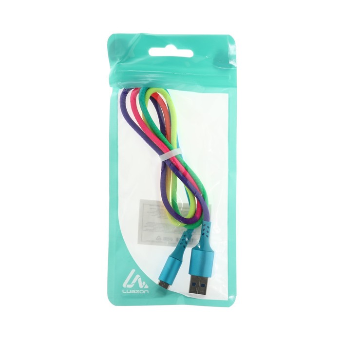 Кабель Luazon, Type-C - USB, 2 A, 1 м, оплётка нейлон, разноцветный — Характеристики