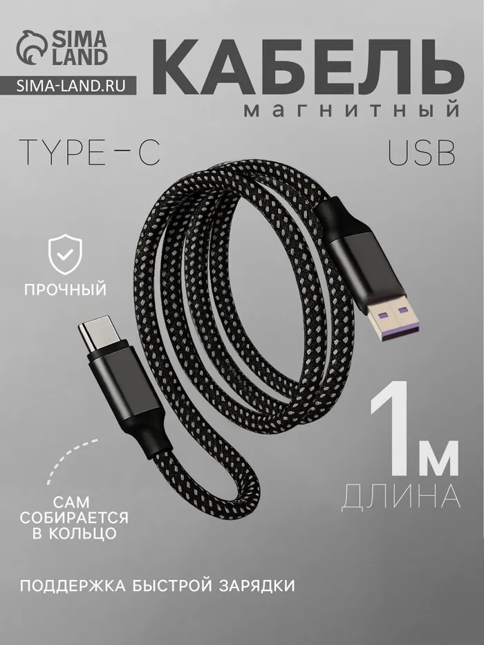 Кабель Type-C - USB, магнитный, 3 А, 60 Вт, с оплёткой, чёрный — Характеристики