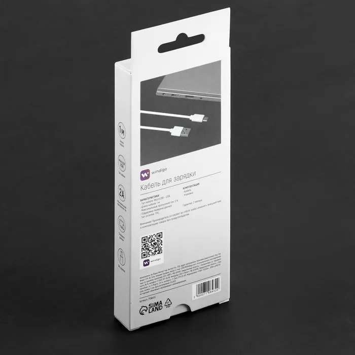 Кабель Windigo, microUSB - USB, 2 А, зарядка + передача данных, TPE оплетка, 1 м, белый — Характеристики