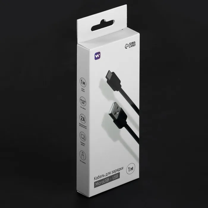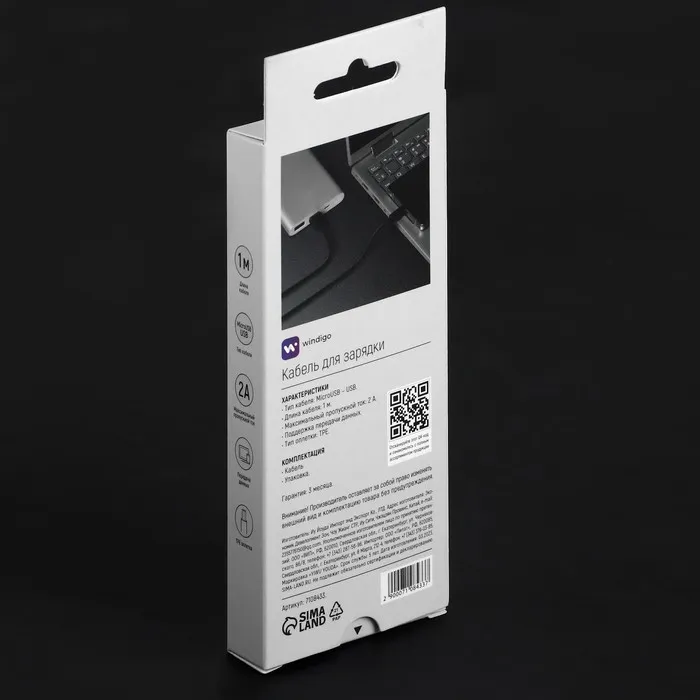 Кабель Windigo, microUSB - USB, 2 А, зарядка + передача данных, TPE оплетка, 1 м, черный — Характеристики
