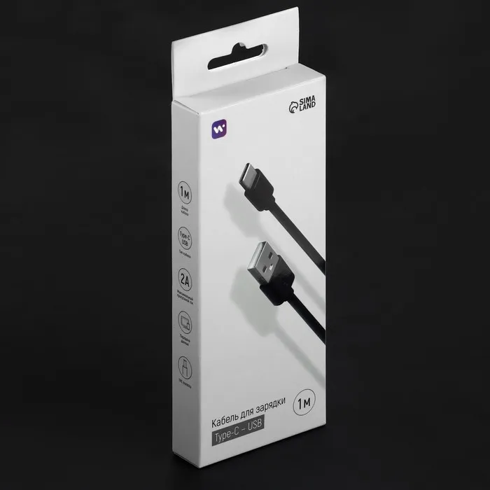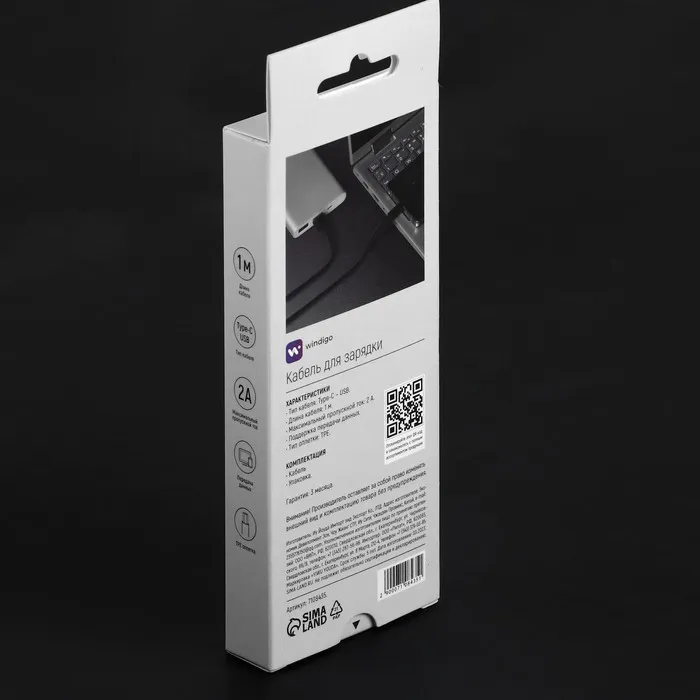 Кабель Windigo, Type-C - USB, 2 А, зарядка + передача данных, TPE оплетка, 1 м, черный — Характеристики