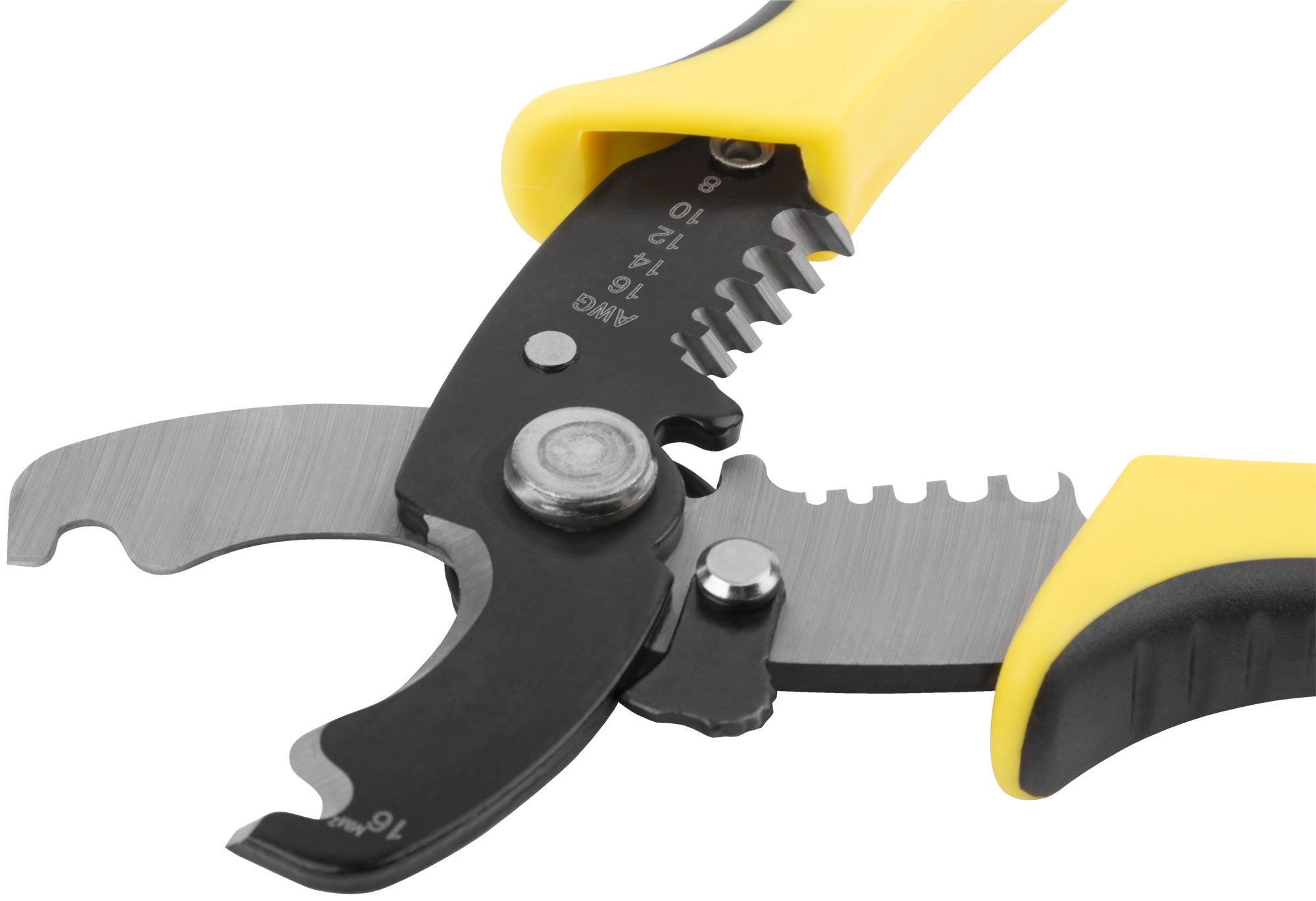 Этот кабелерез от FIT идеально подходит для снятия изоляции с одножильных и многожильных проводов диаметром от 1,3 до 4,6 мм. Незаменим в электромонтажных работах, где требуется точность и аккуратность.
