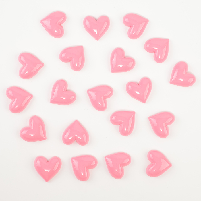Кабошон «Сердечко», набор 20 шт., размер 1 шт. — 3,3 × 3,3 × 0,3 см, цвет розовый