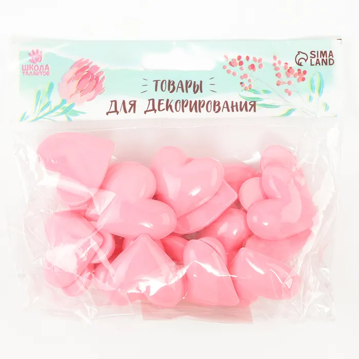 Кабошон «Сердечко», набор 20 шт., размер 1 шт. — 3,3 × 3,3 × 0,3 см, цвет розовый — Характеристики