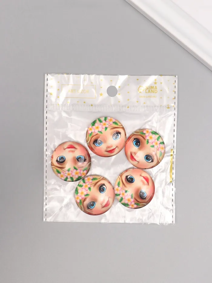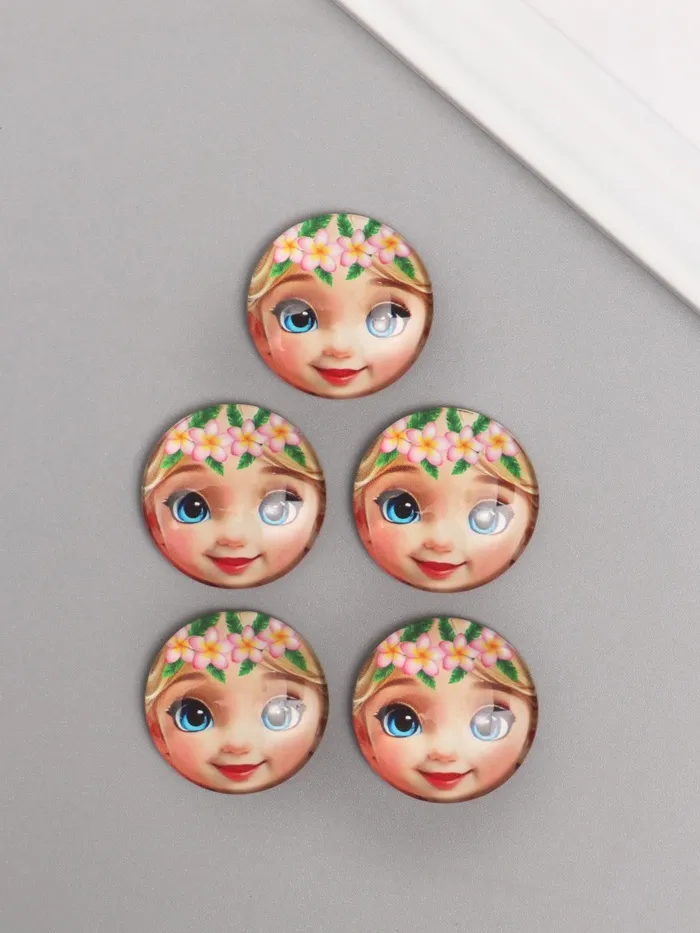 Кабошон стекло для творчества «Круг. Малышка с цветочным венком», 3×3 см — Характеристики