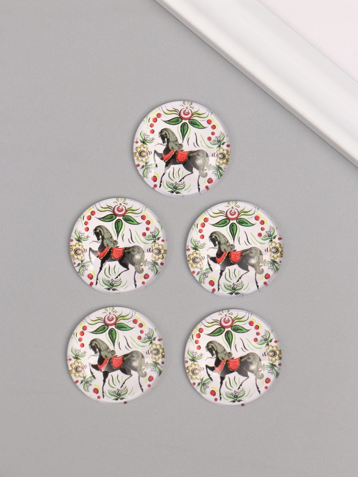 Кабошон стекло для творчества «Круг. Русский конь», 3×3 см — Характеристики