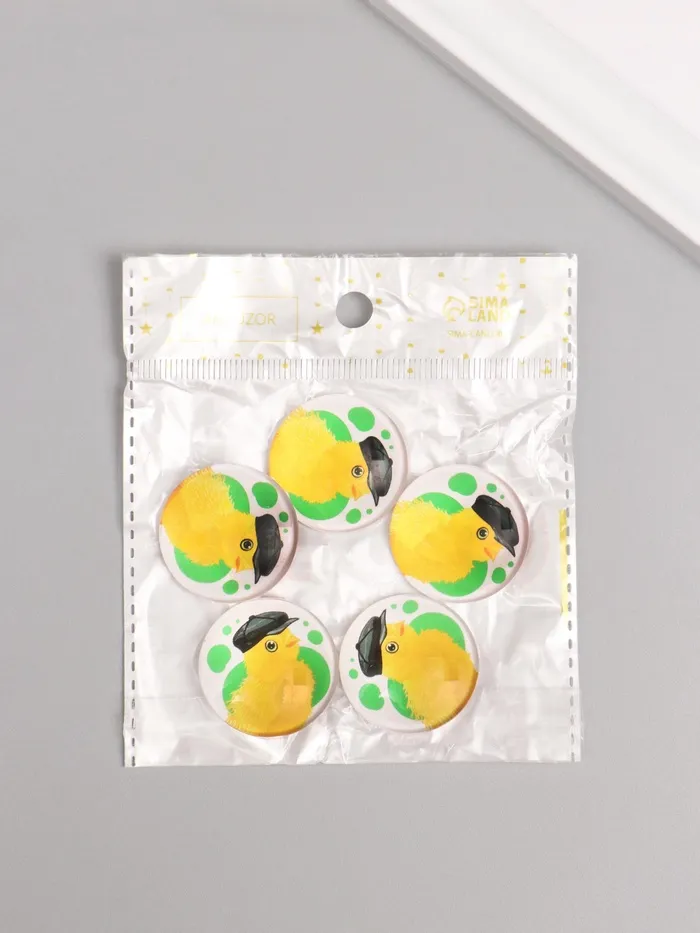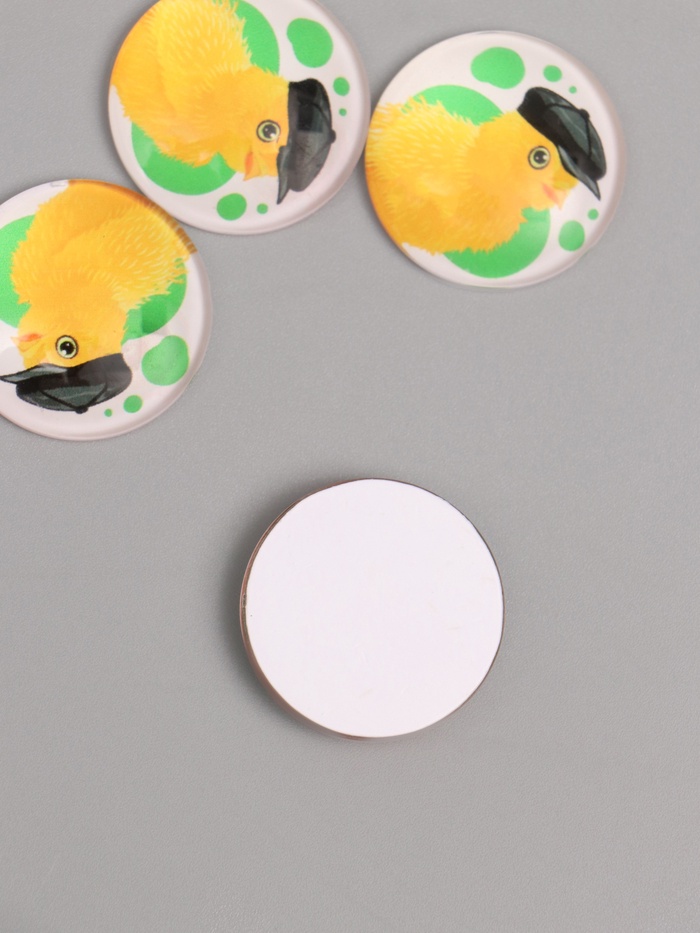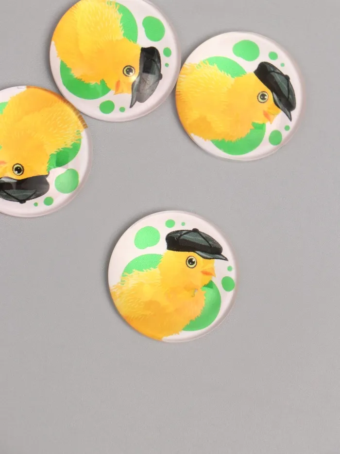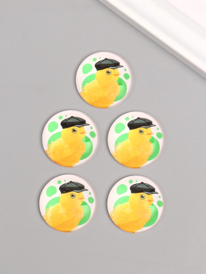 Кабошон стекло для творчества "Круг. Цыплёнок в кожаной кепке" 3х3 см — Характеристики