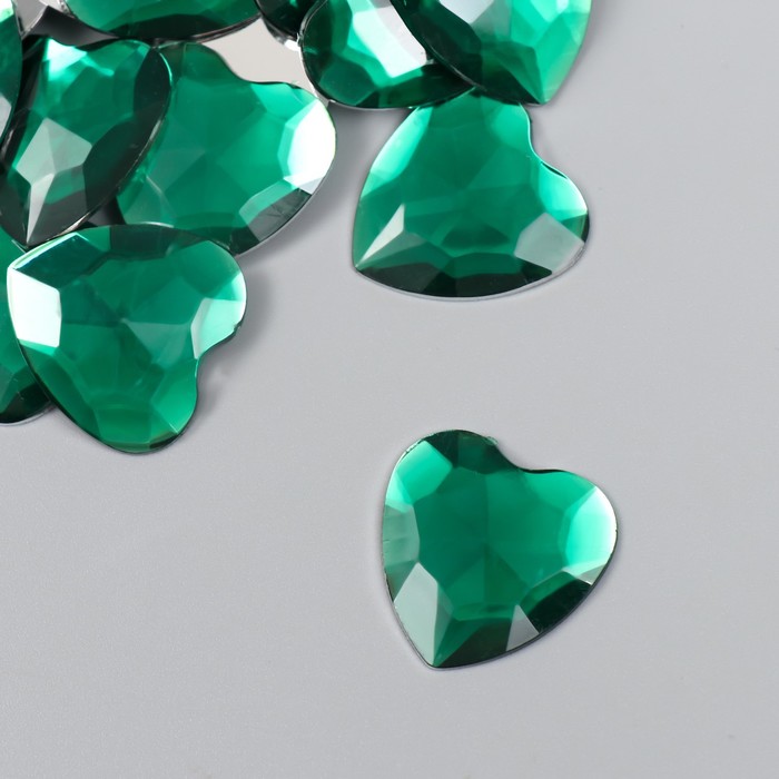 Декоративные элементы для творчества «Арт Узор. Стразы сердце. Тёмно-зелёный», набор 30 шт., пластик, 2.5×2.5 см