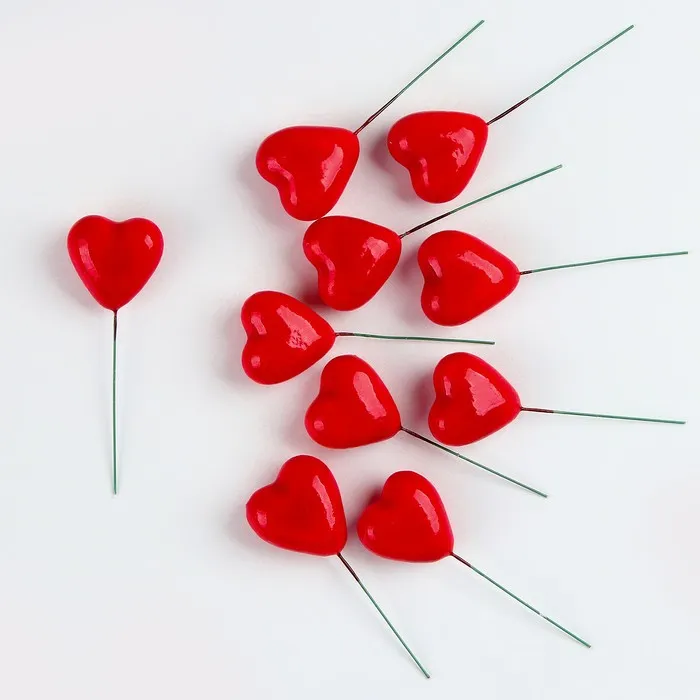 Набор топперов на проволоке «Сердце», набор 10 шт., размер 1 шт. — 4 × 2,5 × 10 см