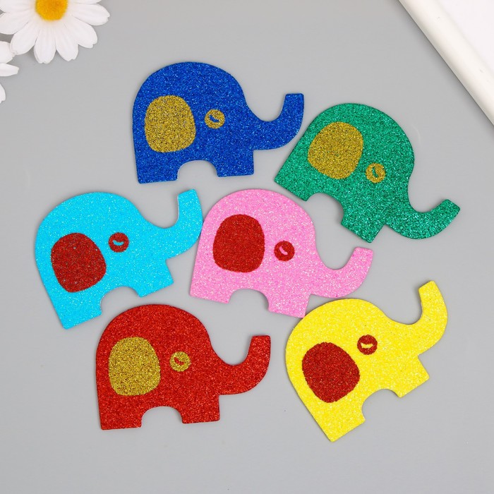 Декор для творчества EVA «Слоники», блёстки, набор 6 шт., 13×15 см