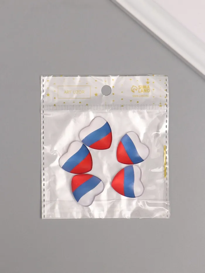 Кабошон стекло для творчества «Сердце. Россия», 2.5×2.5 см