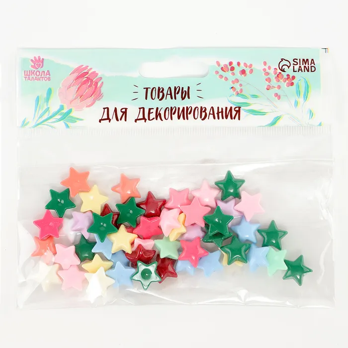 Кабошоны «Звёздочка» — это яркие и привлекательные декоративные элементы, изготовленные из пластика. Набор включает 50 разноцветных кабошонов, каждый размером 1,5 × 1,5 × 0,2 см. Эти украшения могут стать прекрасным дополнением для создания бижутерии, декора одежды, аксессуаров и других творческих проектов.