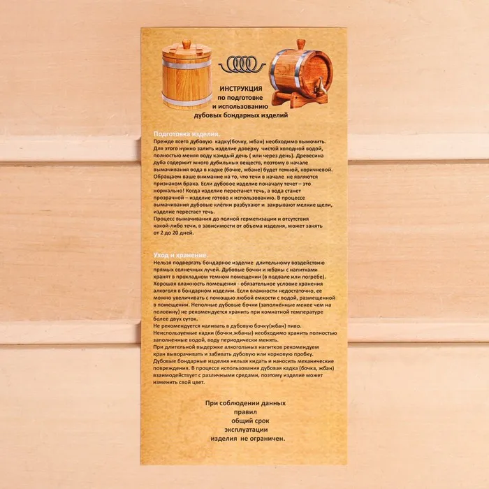 3. Храните бондарное изделие вдали от солнца и обогревательных приборов, не сушите во избежание рассыхания;