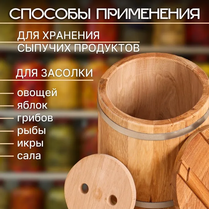 Кадка-бочка для засолки дубовая, 10 л, нержавеющий обруч, с крышкой, с гнетом — Характеристики