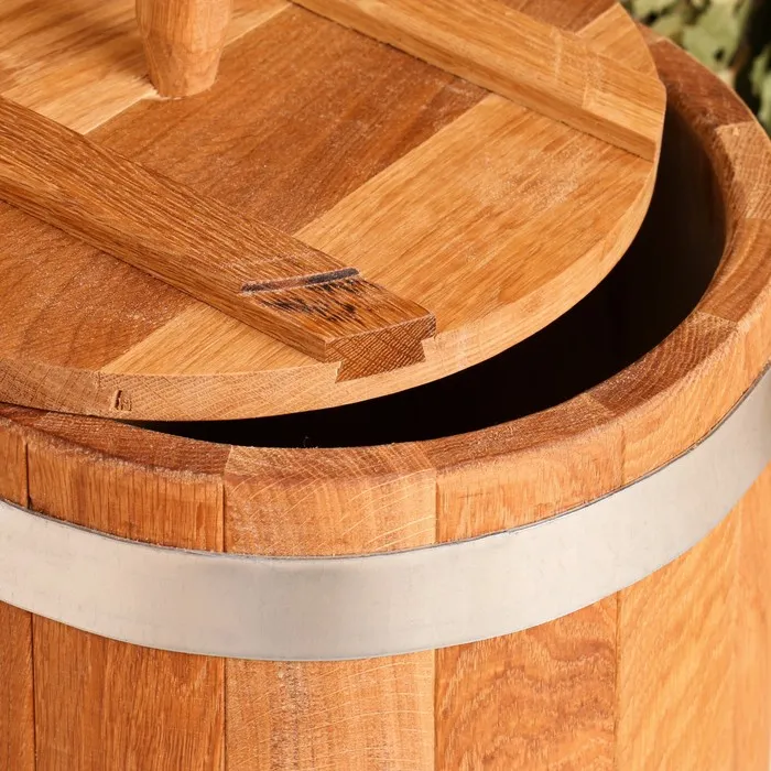 - Перед тем как использовать бондарное изделие впервые, залейте его холодной водой и выдержите 2-3 часа;