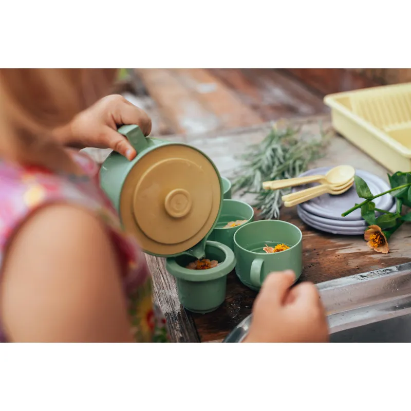 Plasto-кoфейный набор для четырех человек – это экологически чистое дополнение к домашним играм. Посуда изготовлена из биопластика на основе сахарного тростника. Игровую посуду можно мыть в посудомоечной машине.