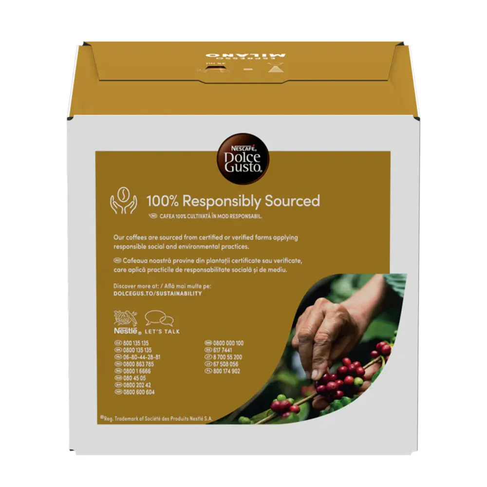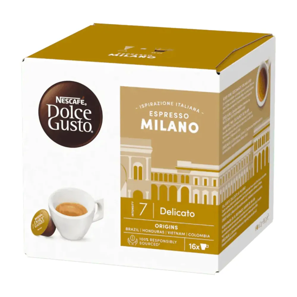 Кофейные капсулы NESCAFÉ® Dolce Gusto® Espresso Milano — это отличный выбор для любителей утонченного и насыщенного кофе. Ощутите атмосферу Милана в каждой чашке!