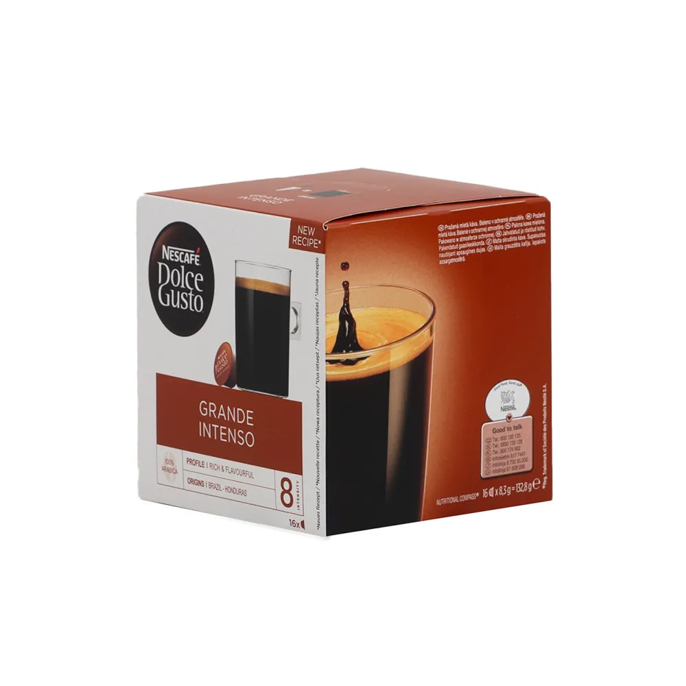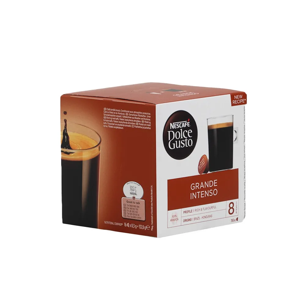 Познакомьтесь с кофейными капсулами NESCAFÉ® Dolce Gusto® Grande Intenso, 100% арабика с насыщенным вкусом, ароматом свежесваренного кофе, фруктовыми нотками и богатым вкусом.