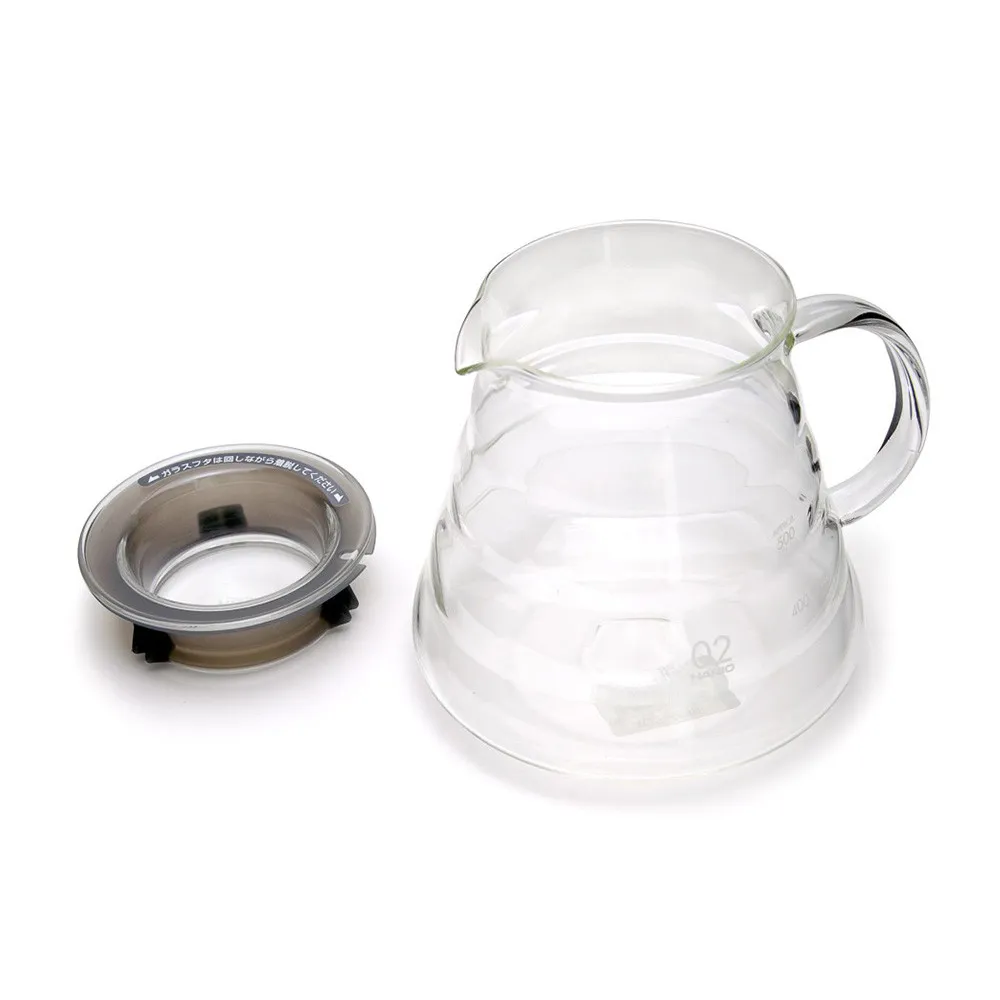 Отдельная стеклянная крышка и силиконовая оболочка кофейника помогают сохранять напиток теплым. Он идеально подходит для всех керамических фильтров Hario “V60”.