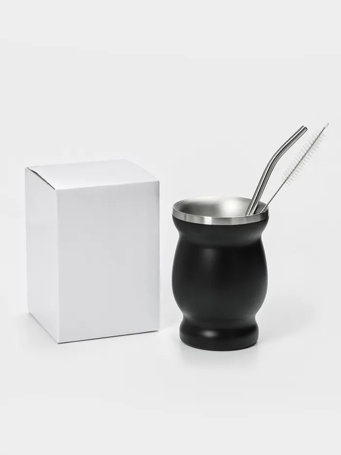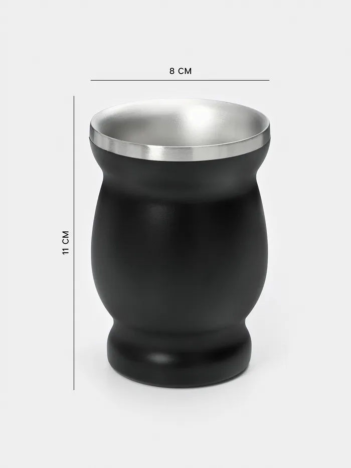 Калабас и бомбилья для приготовления чая Мате, 240 мл, с щёткой для чистки, нержавеющая сталь, чёрный — Характеристики