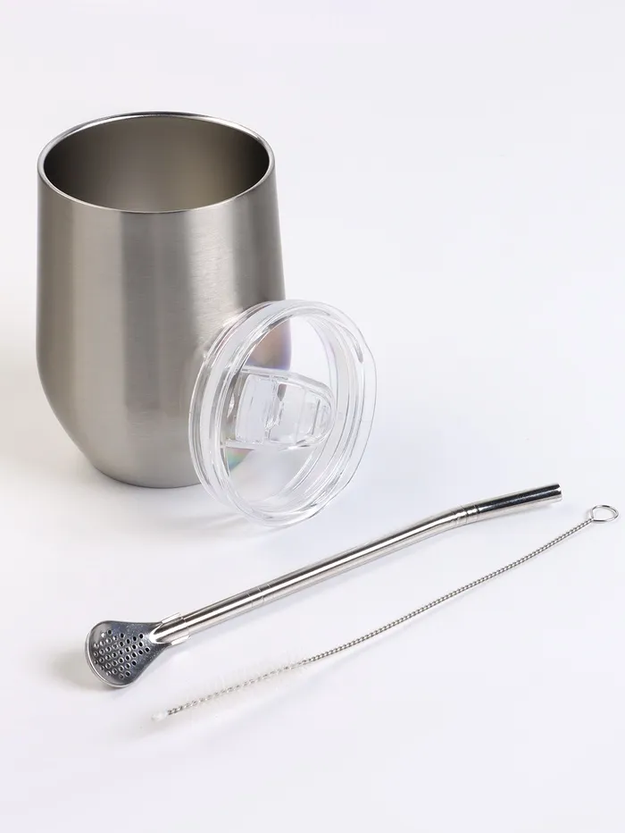 Классический набор для приготовления и употребления традиционного чая Мате, состоящий из калабаса (350 мл), бомбильи (специальной трубочки) и удобной щеточки для очистки. Изготовлен из высококачественной нержавеющей стали серебристого цвета. Предназначен для одной персоны.