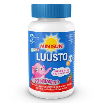 Приятный на вкус, мягкий и жевательный препарат кальция и витамина D специально разработан для детей. Minisun Luusto обладает приятным клубничным вкусом и не имеет мучного известкового привкуса!