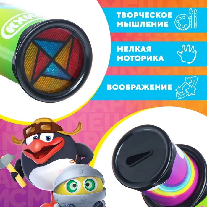 Калейдоскоп развивает фантазию, цветовосприятие и концентрацию. Ребёнок тренирует внимание и придумывает сюжеты. Отличный подарок для мальчиков и девочек, которые любят мультфильм. Подарите ребёнку радость открытий — пусть каждый поворот создаёт сказку!