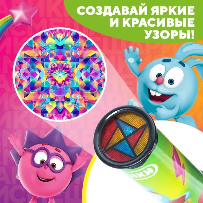 Создавай волшебные узоры с любимыми героями! Калейдоскоп «Друзья: Смешарики» — это яркая игрушка для детей от 3 лет. Вращайте трубку — и перед глазами будут появляться красочные узоры. Простое управление и яркие образы увлекут ребёнка надолго.