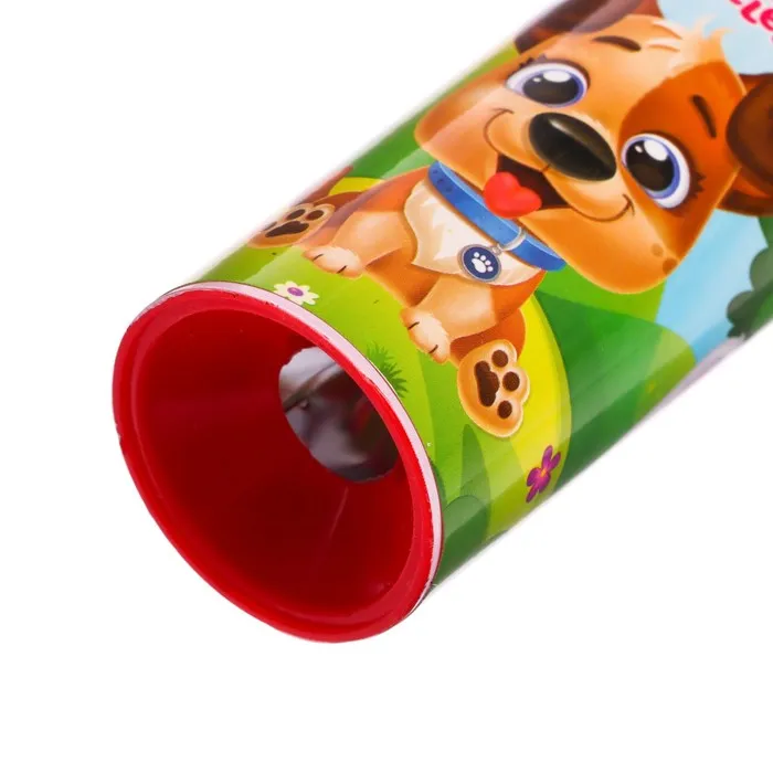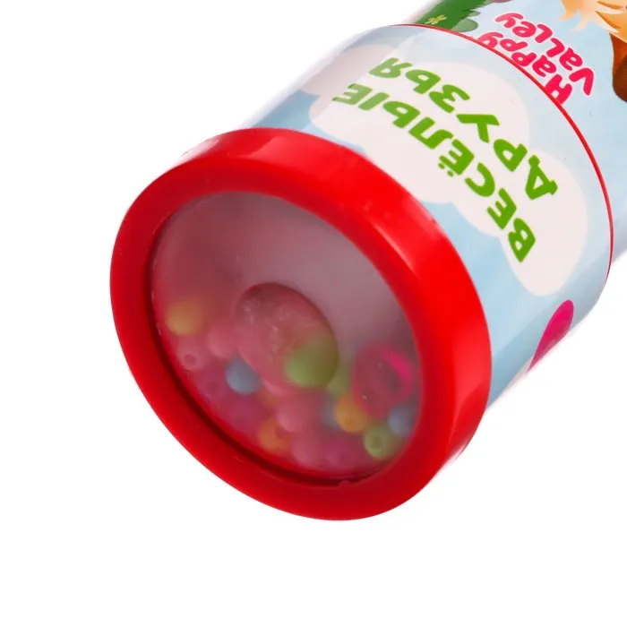 Детский калейдоскоп имеет яркий привлекательный дизайн с милыми героями. У этой оптической игрушки оптимальный для ручки ребёнка диаметр — 4 см. Калейдоскоп выполнен из пластика, поэтому малышу будет легко его держать.