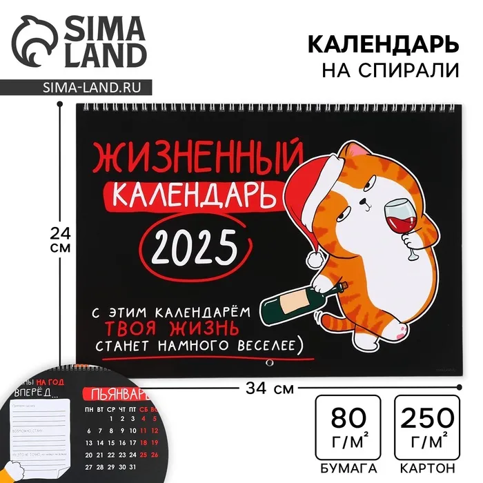 Календарь 2025 настенный, на спирали «Жизненный», 34 х 24 см — Характеристики