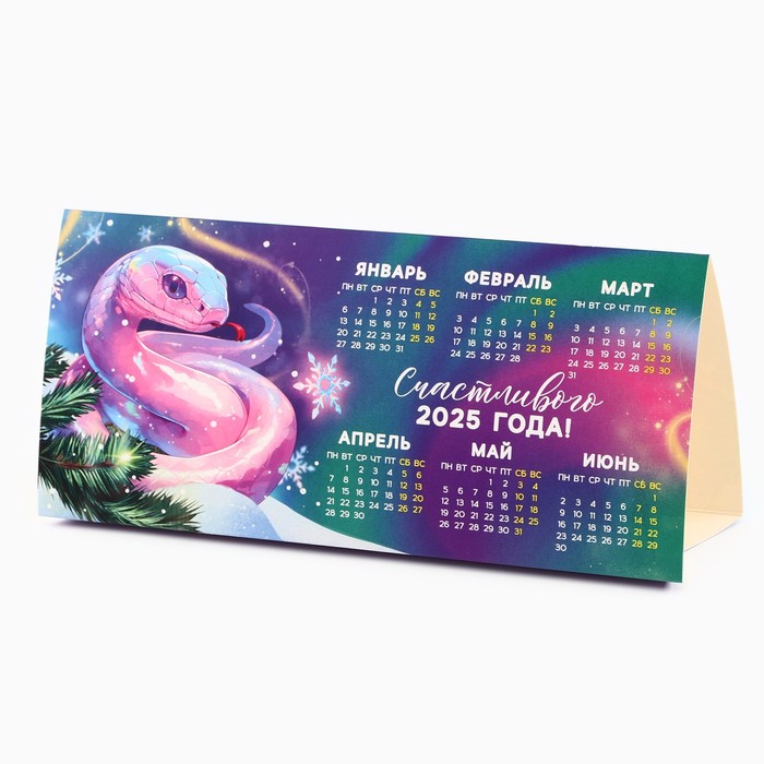 Настольный календарь 2025 «Змея. С Новым годом», деревянный на подставке