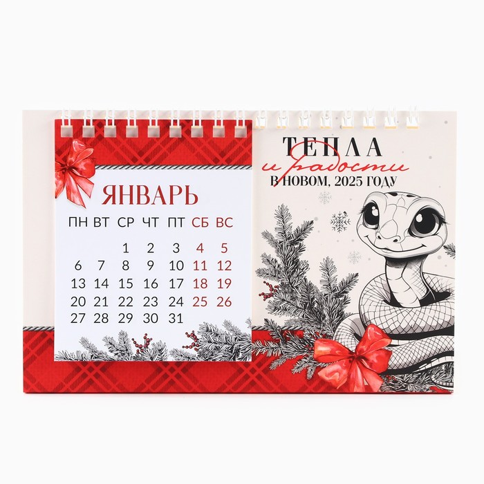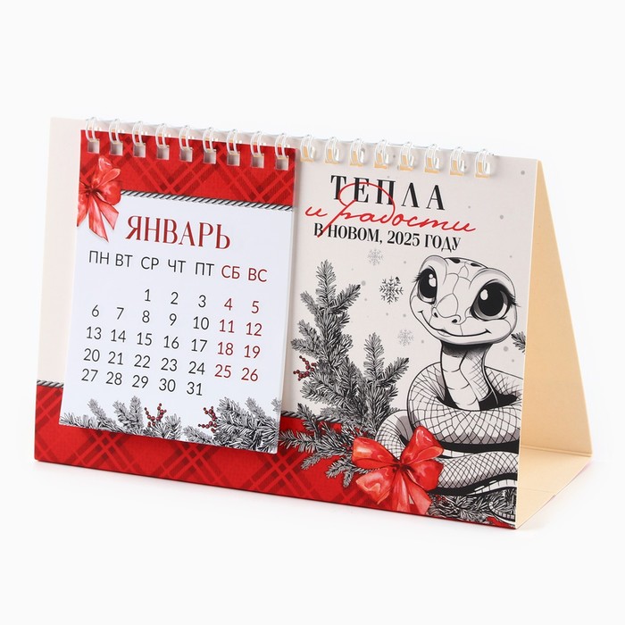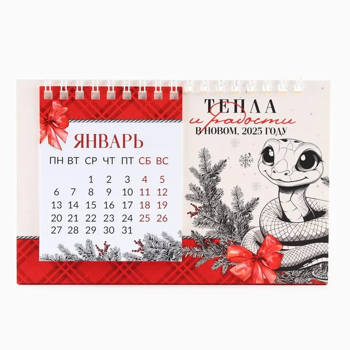 Настольный календарь 2025 «Змея. С Новым годом», деревянный на подставке