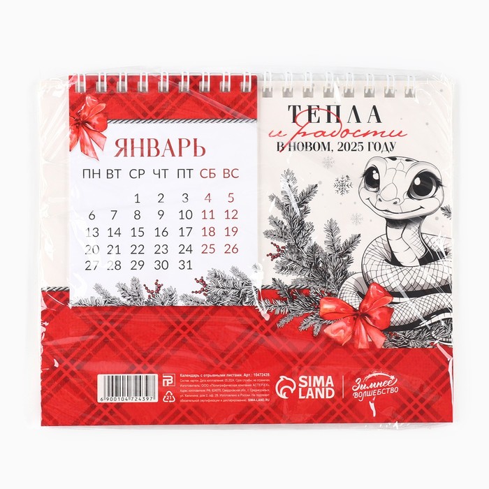 Календарь 2025 настольный с отрывными листами «Новый год: Любви, тепла и волшебства», 16,9 х 14 см — Характеристики