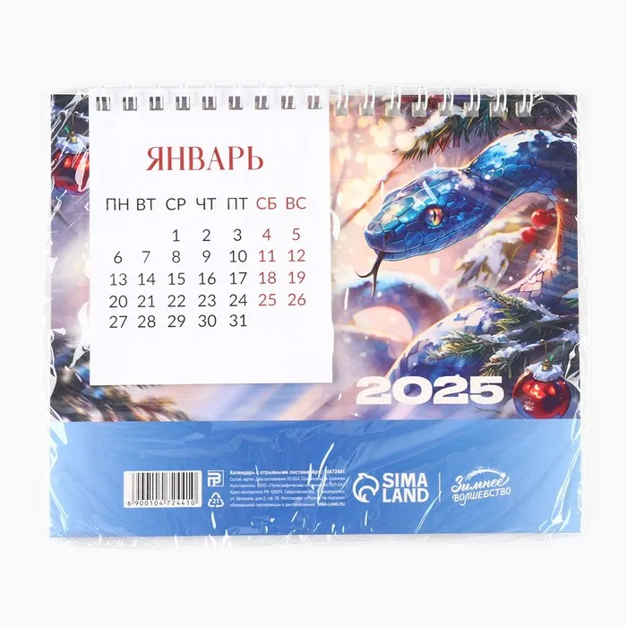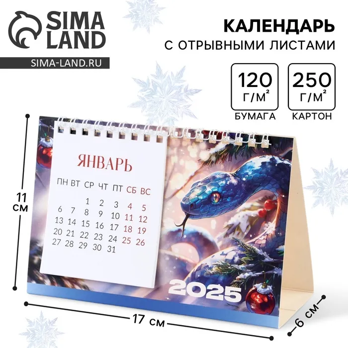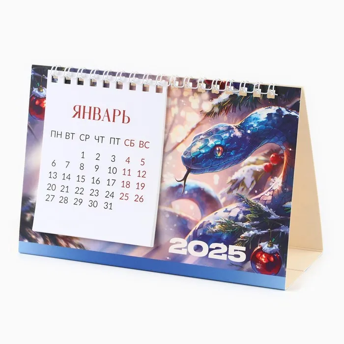 Настольный календарь 2025 «Змея. С Новым годом», деревянный на подставке