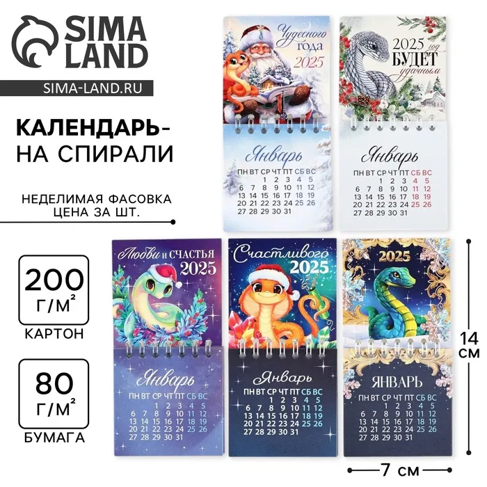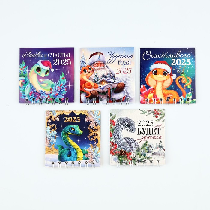 Календарь 2025 новогодний на спирали «Новый год: Новогодние чудеса», МИКС из 5 шт, 7 х 7 см — Характеристики
