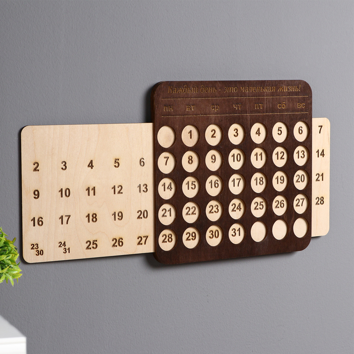 Настенный календарь вечный «День», дерево, 23×22×44 см
