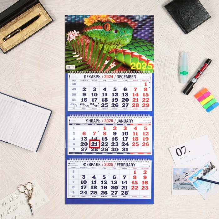 Календарь квартальный, трио «Символ года 2025», 69×31 см