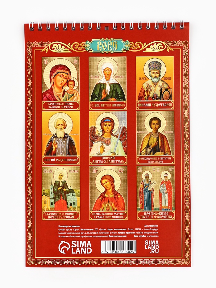 Календарь 2026 на пружине без ригеля «Церковно-православный» — Характеристики