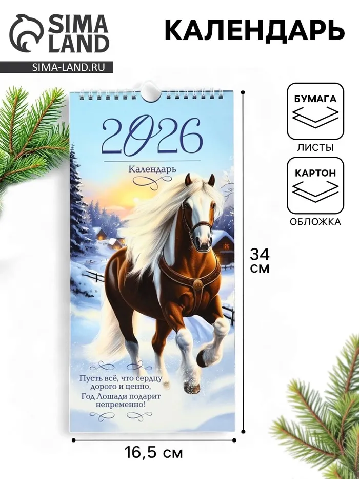 Календарь 2026 на ригеле «Год лошади подарит» 16.5×34 см — Характеристики