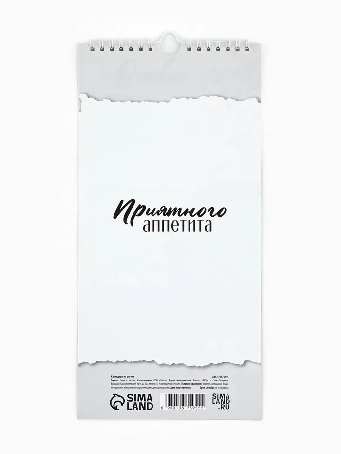Календарь 2026 на ригеле «Кухонный календарь» 16.5×34 см — Характеристики