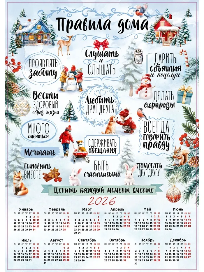 Календарь 2026 настенный «Правила дома», А2 — Характеристики