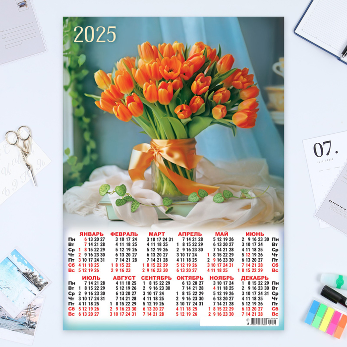 Календарь листовой А2 «Цветы - 3» 2025 год, 42×60 см