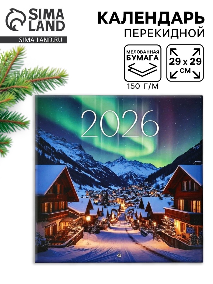 Календарь 2026 перекидной на скрепке 6 листов «Сияние» 29×29 см — Характеристики