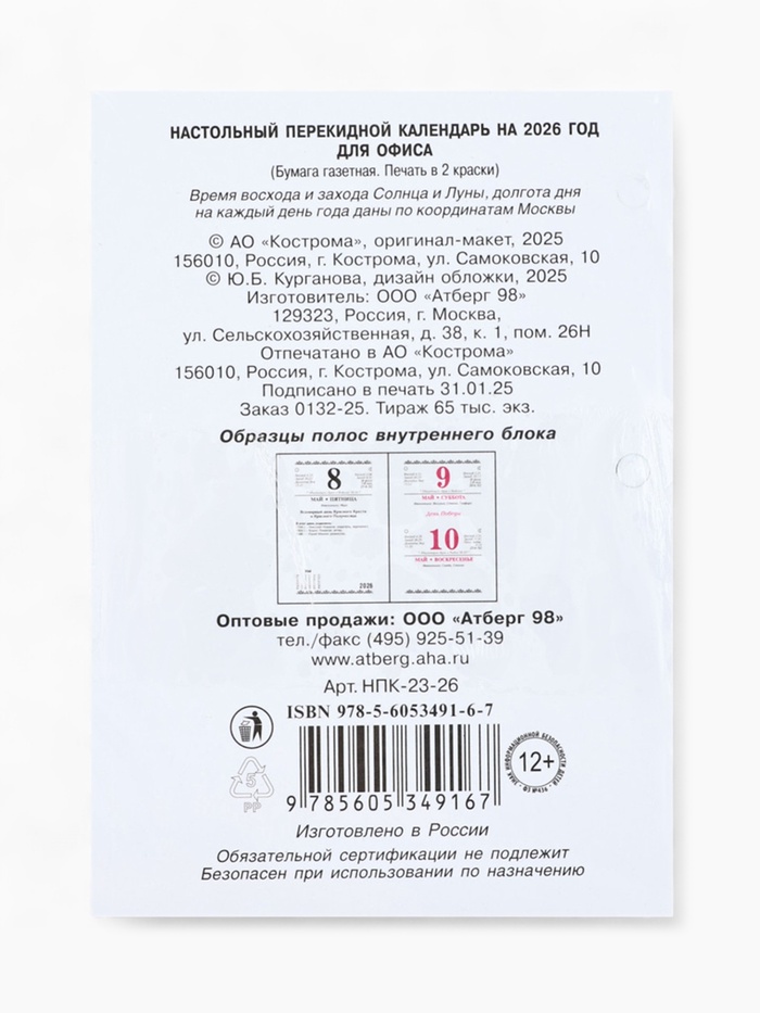 Календарь 2026 перекидной настольный «Офисный», сменный блок, 160 листов — Характеристики